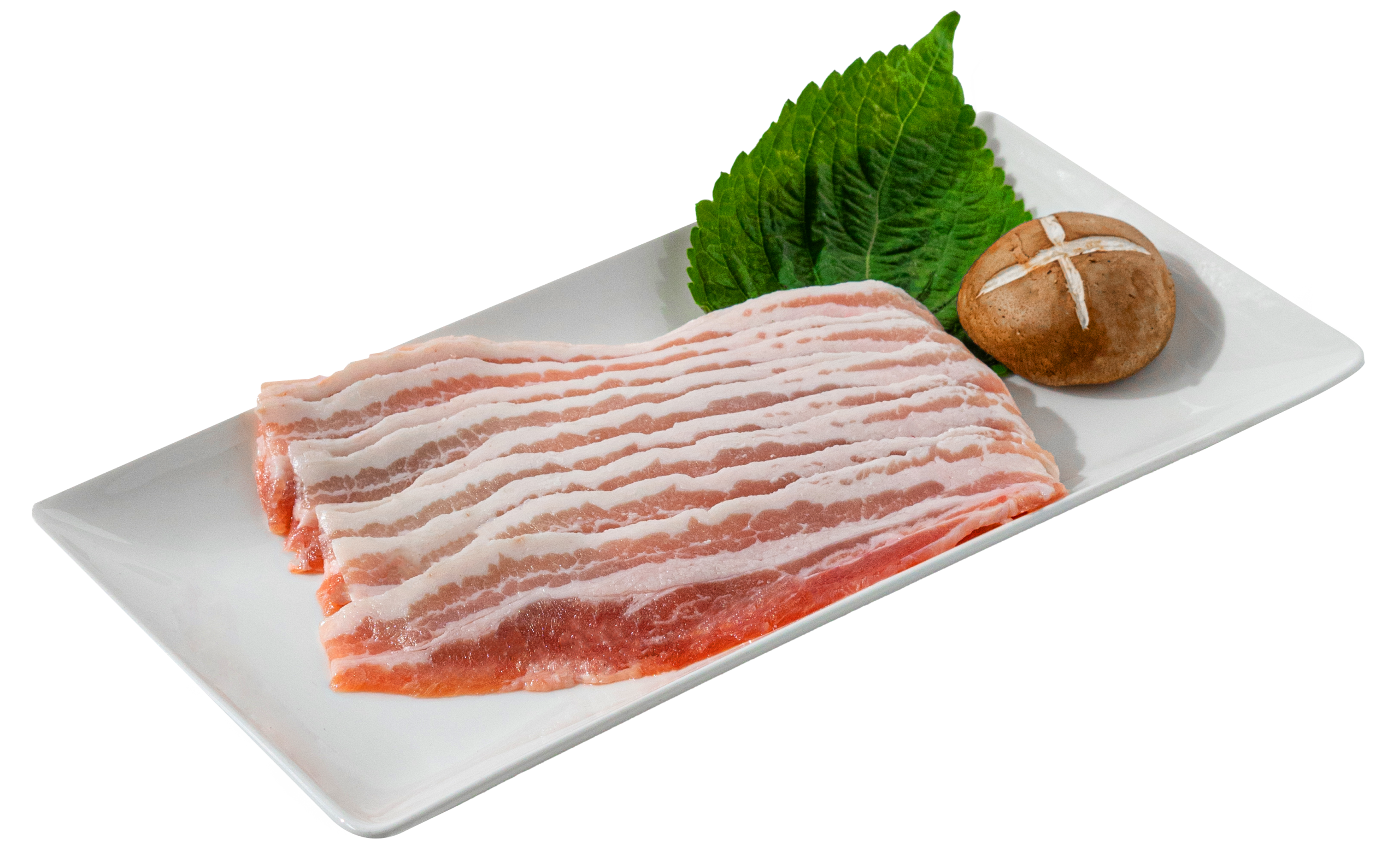 아주 얇게 썬 삼겹살로 빠르게 구워 먹을 수 있어 편리하며, 바삭한 식감이 특징인 인기 있는 돼지고기 부위입니다.