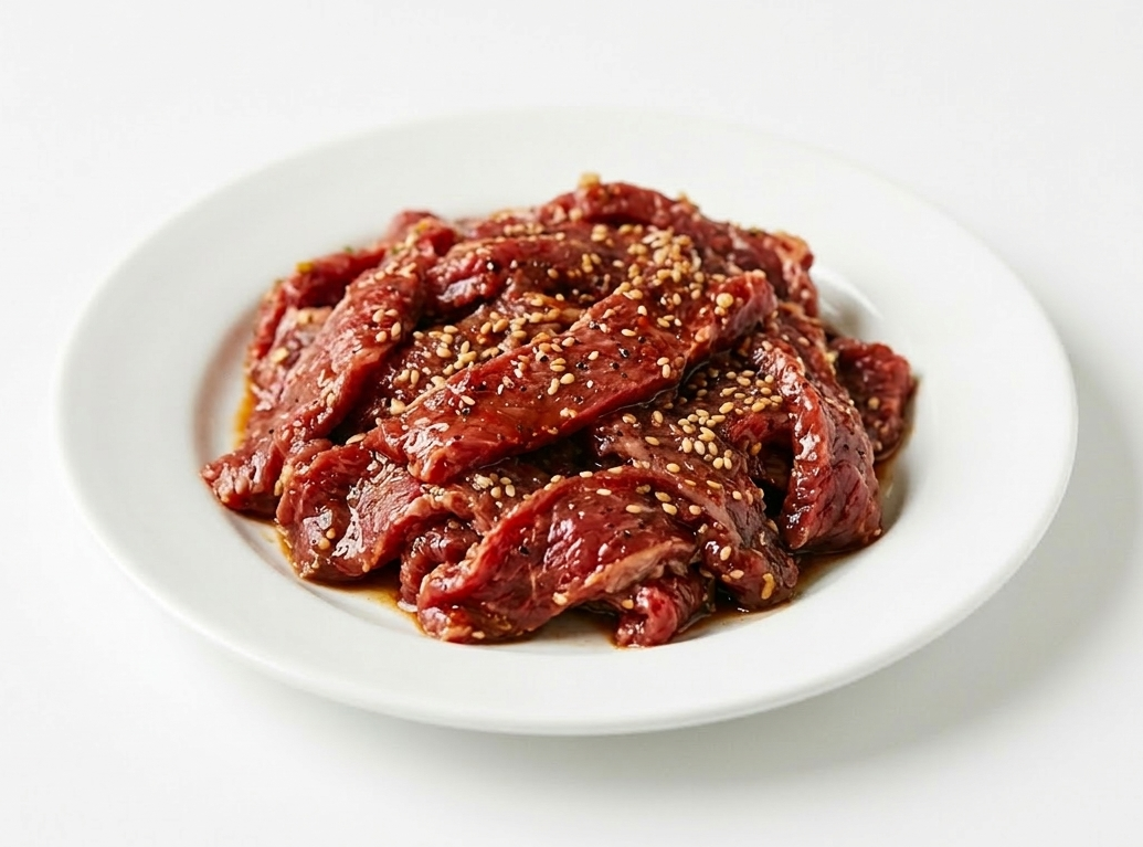 이 양념 불고기는 부드러운 식감과 뛰어난 풍미가 특징인 미국산 소고기 목살로 만들었습니다. 볶음이나 구이 요리에 안성맞춤입니다. 목살은 지방 함량이 높은 삼겹살에 비해 건강에도 좋은 선택입니다.